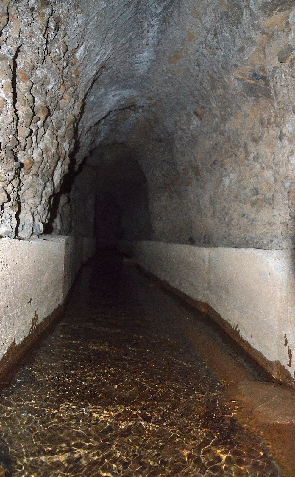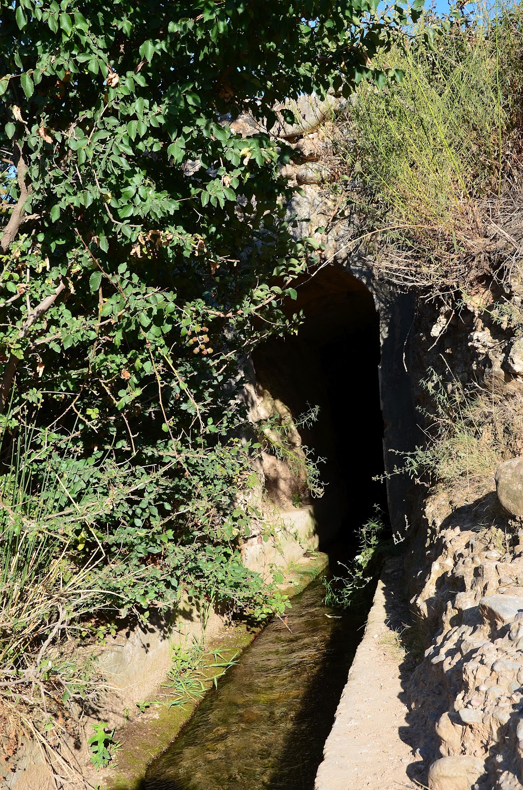 a la mitad del recorrido el túnel se interrumpe, discurriendo la acequia al