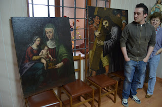 fueron recibidos tres lienzos y un frontal restaurados por Dª María Pilar Bea