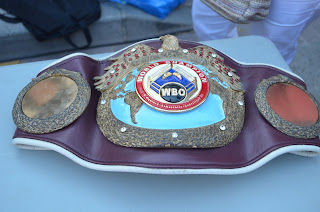 una mesa se encontraba el cinturón que se ciñó al proclamarse Campeón del